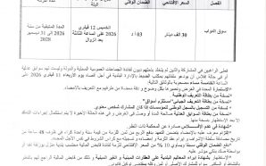 إعلان بتة عمومية بالظروف المغلقة للمرة الأولى لتسويغ سوق الدواب…