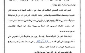 • إعلان استشارة إنجاز أشغال تركيز وحدة انتاج كهرباء فوتوضوئية ببلدية منزل بوزلفة.