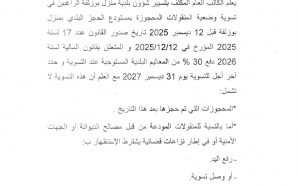 • بلاغ حول تسوية وضعية المحجوزات المودعة بمستودع الحجز والإيداع البلدي