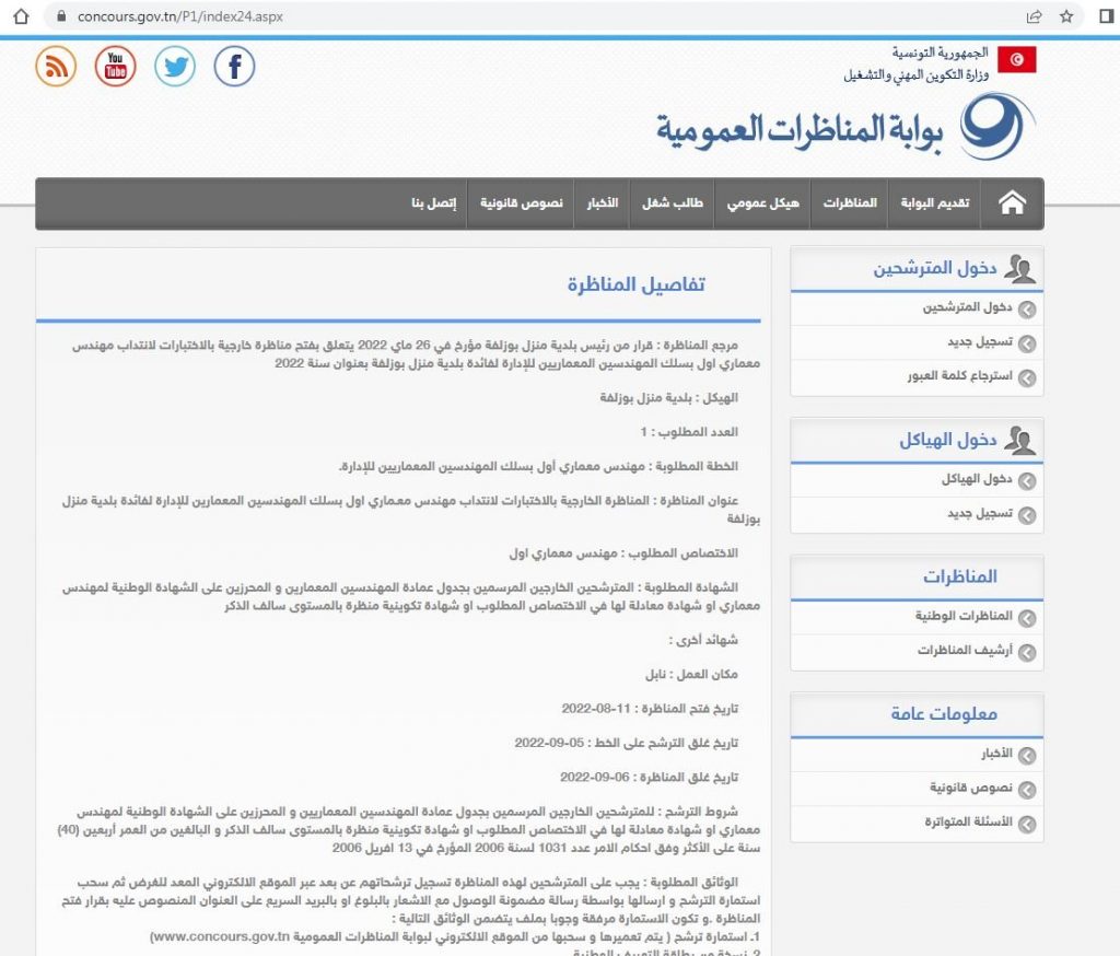 إعلان عن فتح مناظرة خارجية بالاختبارات لانـتـداب مهندس معماري أول بسلك المهندسين المعماريين للإدارة