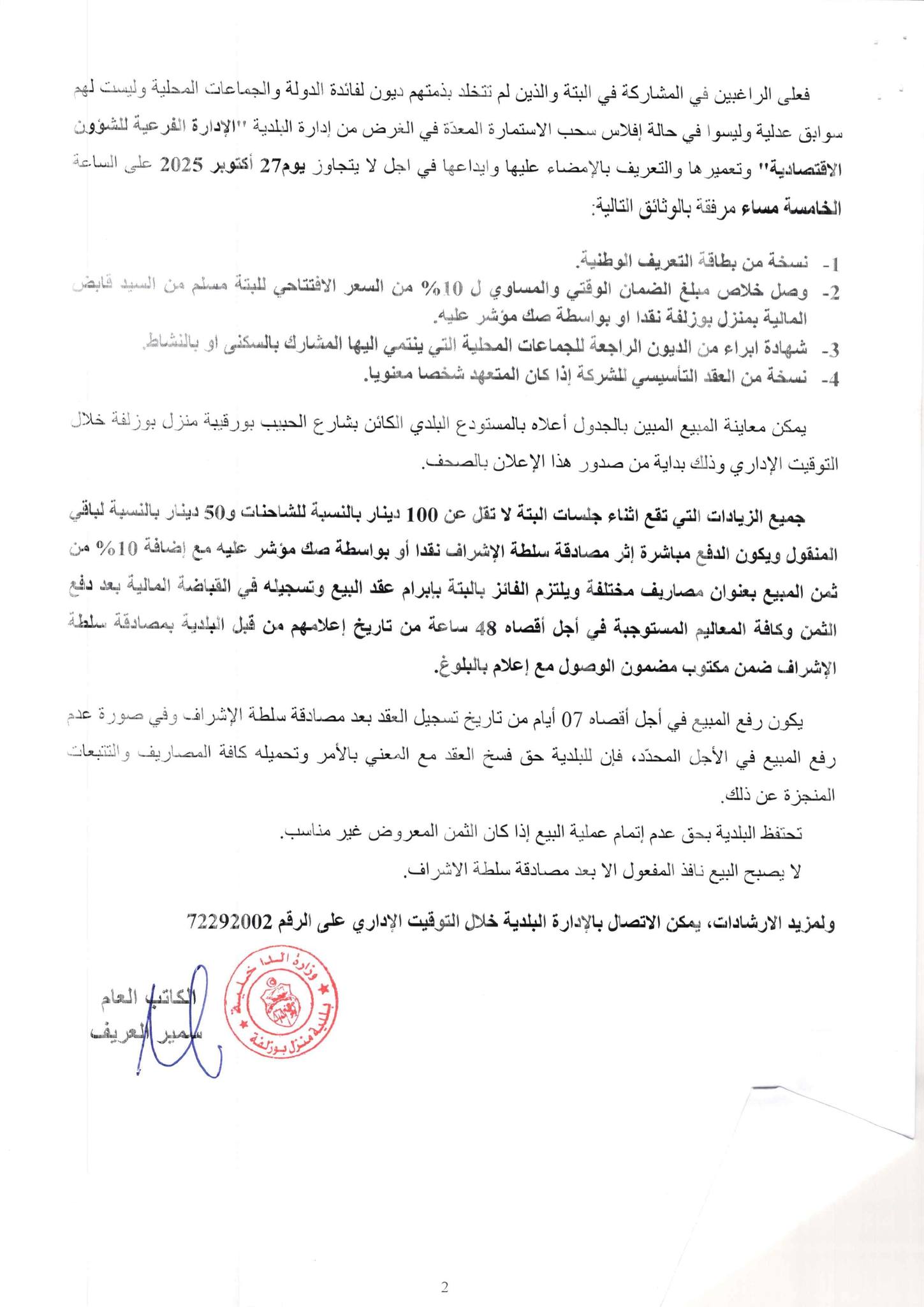بلاغ انتداب عدد 02 عملة متعاقدين اختصاص حراسة لفائدة بلدية…